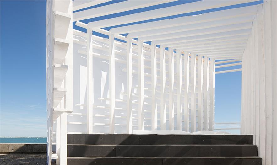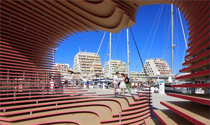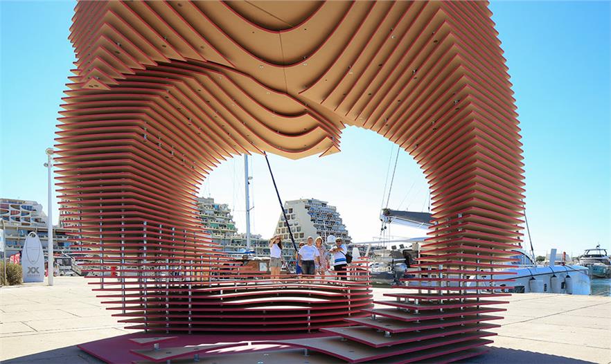 碧海藍天下的展覽--法國蒙彼利埃 2015FAV建筑節(jié)(拉格朗德默特展區(qū))。