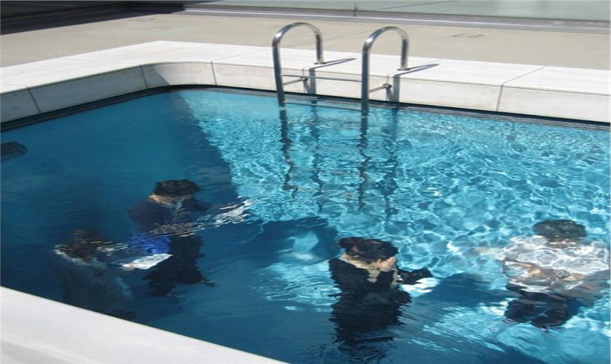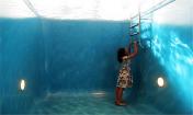 這是2004年Leandro ERLICH在日本金沢二十一世紀(jì)美術(shù)館展出的Swimming Pool作品。利用美術(shù)館的天窗加上一層水,并加上假的泳池扶手,從上看恍若真的游泳池,但游客亦能在底下的展室走動(dòng),上下觀看,造成了特殊的趣味和效果,讓游客感受出空間相遇的作品。