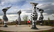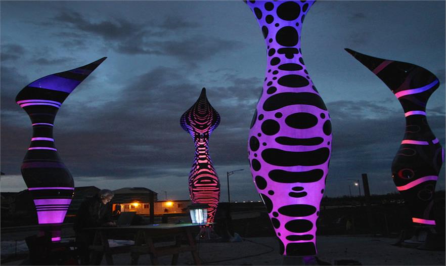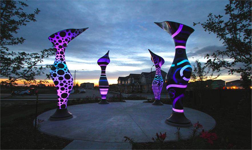 藝術(shù)家丹?柯森在加拿大埃德蒙頓建造了4個(gè)變色的纖維玻璃雕塑,名為Nepenthes Paisley。