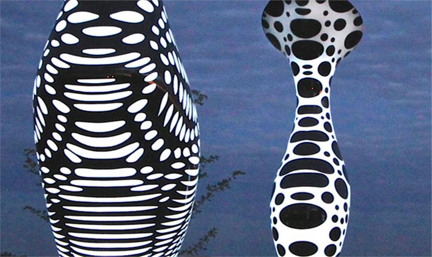 每個(gè)雕塑是一樣的,但它們都有獨(dú)特、透明的單色圖案,賦予每個(gè)裝置獨(dú)有的特性。