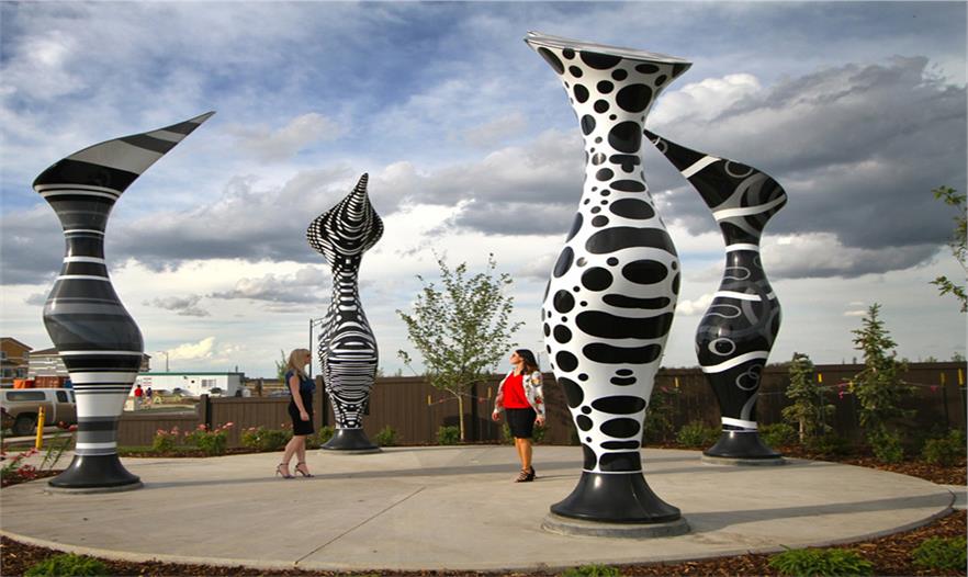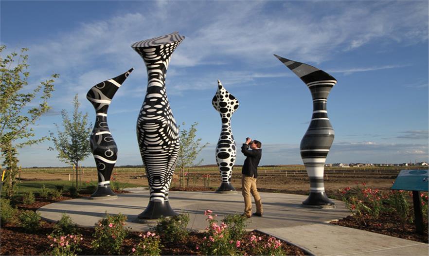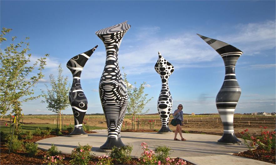 這4個(gè)單色的纖維玻璃雕塑被安裝在加拿大埃德蒙頓佩斯利新布魯克菲爾德住宅區(qū)。這些雕塑成為入口道路末端的一個(gè)創(chuàng)意性焦點(diǎn),標(biāo)志著社區(qū)綠化帶的開(kāi)始。