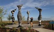 白天,雕塑的單色配置與廣闊、蔚藍(lán)的亞伯達(dá)天空相稱。夕陽(yáng)西下,這些雕塑呈現(xiàn)出更加獨(dú)特的形式,整個(gè)晚上慢慢地變化顏色和圖案。