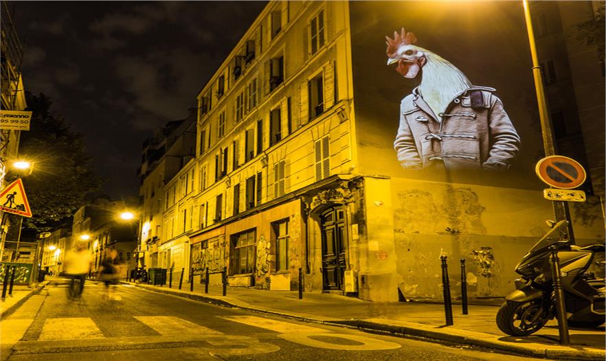 SAFARI URBAIN項(xiàng)目與這個想法一致,出于把這些作品帶到街道上的強(qiáng)烈愿望,直面城市的野生動物,但要在不破壞墻壁的情況下完成。