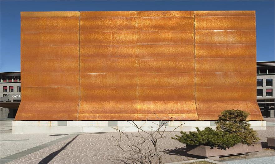 建筑師希特黑勒說道:“空間和物體中包含著人類的存在。人類的身體將自己深深銘刻在他們生活的每道墻壁之間,和銘刻在他們所走過的每一面墻上。因此,景觀可以被理解成一種地形,一種布滿由人類留下的一條條無形等高線的地形。那么,如果我們?cè)谶@些人類空間的痕跡和事物離開人類之后開始查詢,會(huì)發(fā)生什么?自從人類創(chuàng)造了墻以來,墻就注定會(huì)影響人類,物體會(huì)影響那些使用這些物體的人們?!?br/> 作品構(gòu)筑材料的對(duì)比使空間、人體和物體之間的關(guān)系變得突出。這件藝術(shù)裝置作品的外表面是一層生銹的金屬。