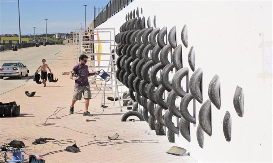 原文鏈接: http://www.contemporist.com/2015/09/22/spanish-artists-use-old-tires-to-create-wall-art/