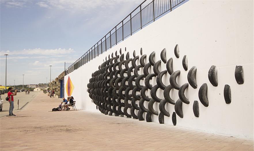CúMUL工作室的一組藝術(shù)家利用回收的輪胎建造出了一個(gè)藝術(shù)裝置,作為西班牙里瓦斯-瓦西亞馬德里市“Cultura en la calle”節(jié)的一部分。