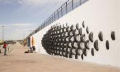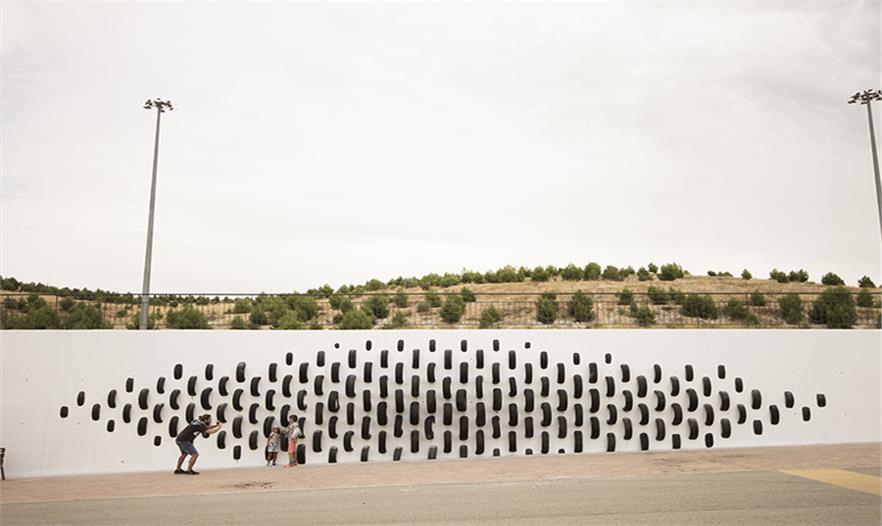 有這樣的先例且在里瓦斯-瓦西亞馬德里市“Cultura en la calle”節(jié)的背景下,藝術(shù)家受廢棄輪胎收集站——Sese?a的啟發(fā)建造而成。這個(gè)輪胎海樣位于沒有任何特定情境的區(qū)域,目的只是將這個(gè)景觀染黑。
