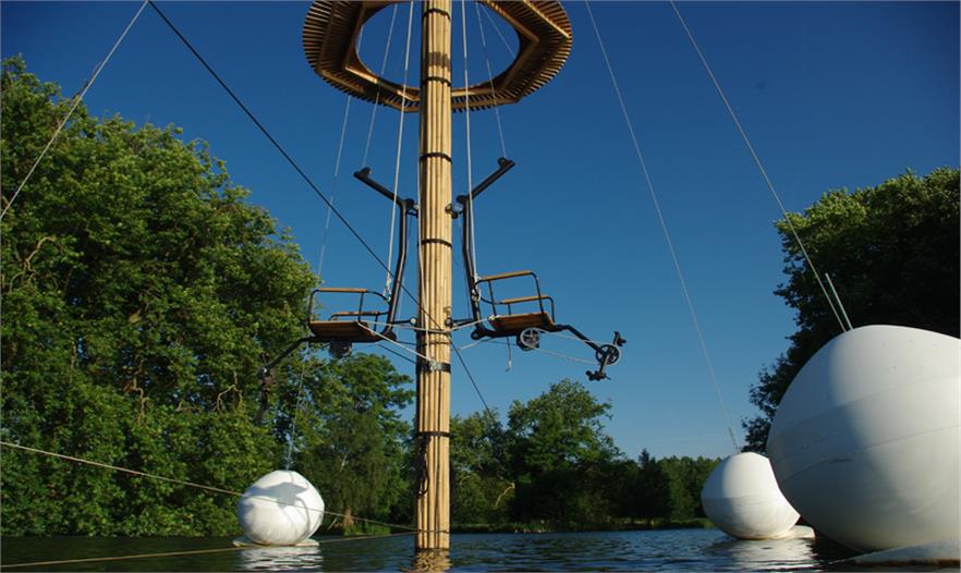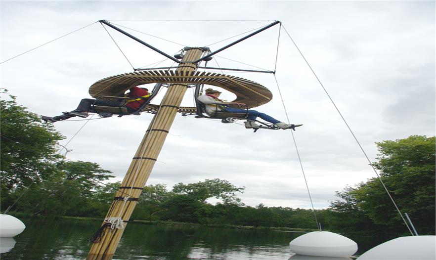 人們通過6米(20英尺)高塔樓基底的繩系平臺到達塔樓。從平臺坐上座位,升到頂端,就可以休閑地欣賞周圍區(qū)域的景色。