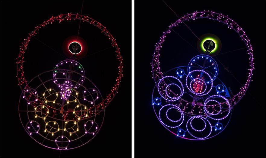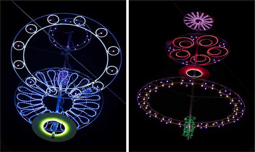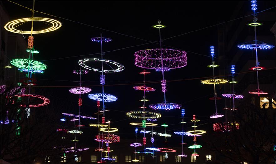 這個燈光裝置被命名為LUX.LGE,由48個枝形吊燈構(gòu)成,分散在勃朗峰大街上,奇特而優(yōu)美。