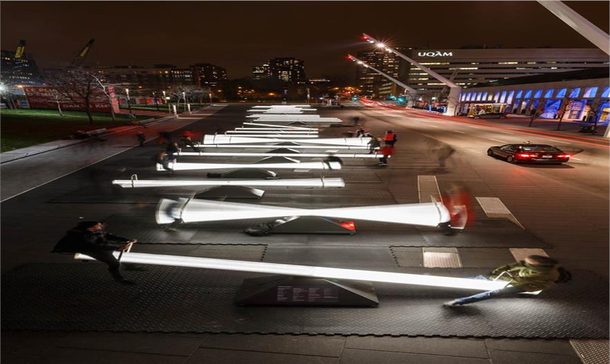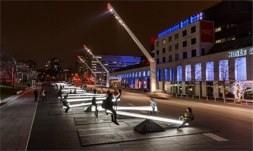這30個(gè)不同規(guī)模的蹺蹺板是該節(jié)日的一部分,設(shè)有燈光和聲音。