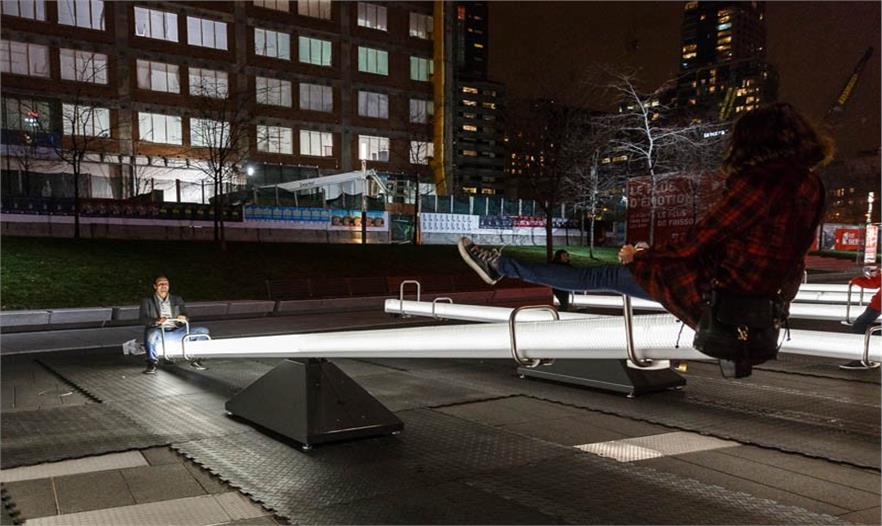 有人坐在蹺蹺板的一邊就會(huì)激活它們,因?yàn)閮?nèi)設(shè)有LED燈和揚(yáng)聲器,能產(chǎn)生一系列美妙的聲音。