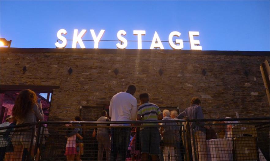 木制座位區(qū)建在2層結(jié)構(gòu)附近,構(gòu)成一個(gè)露天劇院,能放下140個(gè)人。樹木與木制長凳融合在一起,減緩石頭背景沖擊,減少太陽直射。附近屋頂?shù)挠晁皇占剿渲?,被回收利用灌溉植物和樹木。弗雷德里克藝術(shù)委員會(huì)和美國志愿隊(duì)管理該劇院的日常運(yùn)作以及未來舉辦的活動(dòng),如戲劇、音樂表演、兒童故事時(shí)間、藝術(shù)課程、跳舞、歷史、文學(xué)和電影。Sky Stage將于2017年7月開放。
