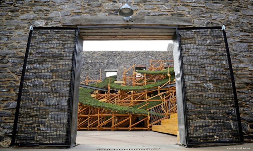 2010年一場(chǎng)大火摧毀了馬里蘭弗雷德里克縣獨(dú)立戰(zhàn)爭之前的一座建筑,該社區(qū)對(duì)失去了這個(gè)歷史建筑而心痛。但是,這個(gè)將近300年歷史的建筑由于Sky Stage藝術(shù)項(xiàng)目重新煥發(fā)生機(jī)。藝術(shù)家希瑟?克拉克(Heather Clark)與麻省理工學(xué)院電子結(jié)構(gòu)研究組合作,暫時(shí)性地將這個(gè)被毀的地產(chǎn)改造成這個(gè)互動(dòng)性公共藝術(shù)品,設(shè)有綠色屋頂技術(shù)和雨水收集系統(tǒng)。