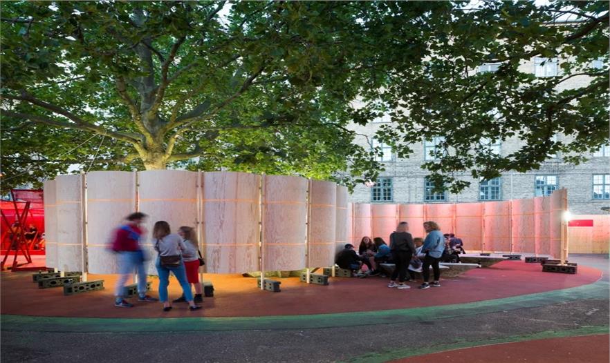 哥本哈根滑板場(chǎng)舉辦了2016 Trailerpark 節(jié),Konkav公共裝置位于活躍區(qū)。它沒(méi)有前后左右之分,就是一個(gè)獨(dú)立的元素,內(nèi)外融合,突出強(qiáng)調(diào)該區(qū)域的現(xiàn)有元素。
