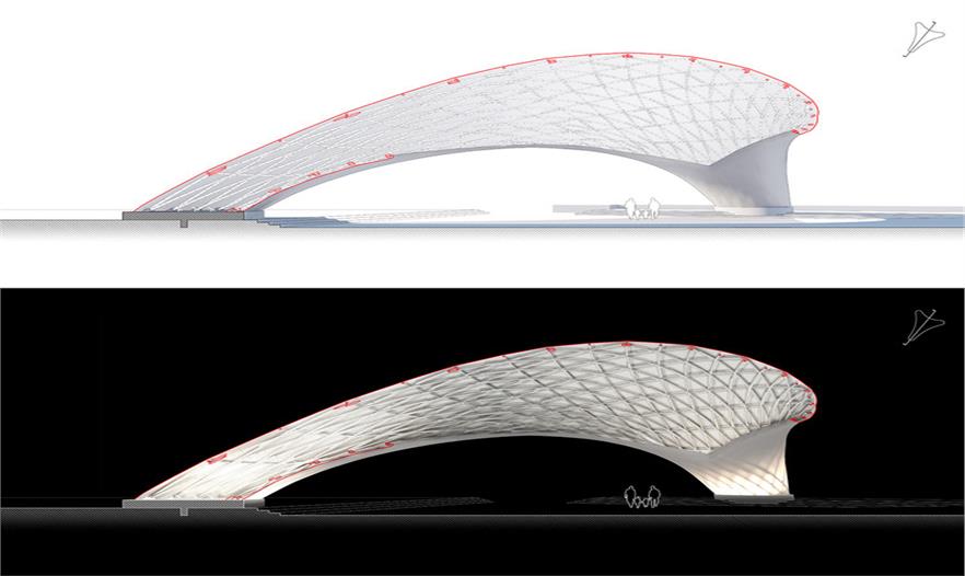竹亭的幾何形狀複雜,每枝竹竿有獨特的形態(tài)、尺寸和結(jié)構(gòu)性質(zhì),而且傳統(tǒng)竹棚都是在沒有圖則下,利用專業(yè)直覺去建造,種種都令竹亭成為建筑師在設(shè)計控制上的大挑戰(zhàn)。就此,團隊研發(fā)了結(jié)合精確數(shù)字化設(shè)計系統(tǒng)和自然資源的方法,來應(yīng)對這些未知數(shù)。