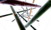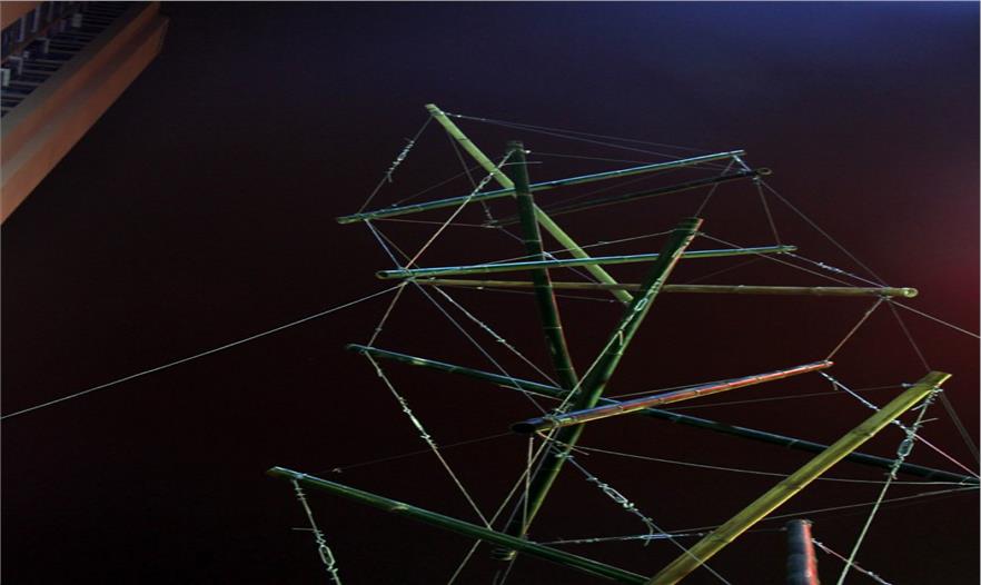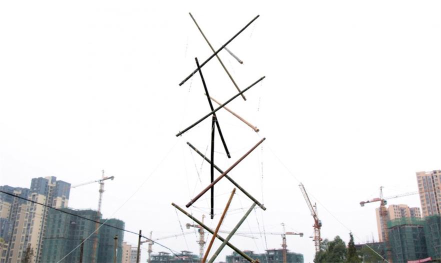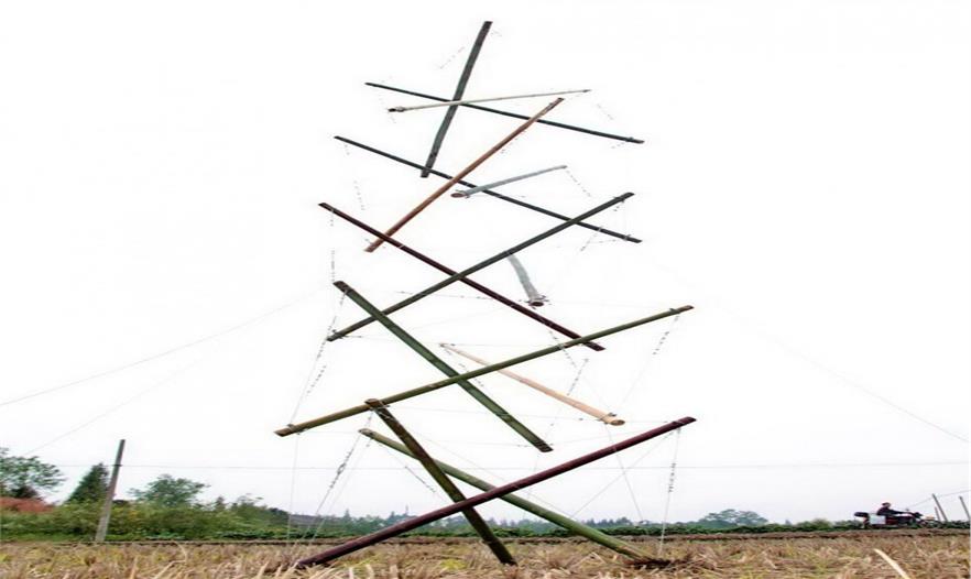 設(shè)計師們討論后決定建造一座張拉體竹塔作為竹文化節(jié)的標志展品。偉大的發(fā)明家富勒在六十年代提出了張拉結(jié)構(gòu)體系,充分發(fā)揮桿件受壓和索件受拉的特性,以極少材料實現(xiàn)高跨空間。這一突破性的結(jié)構(gòu)形式嫁接到中國最接地氣的建筑材料-原竹上,放置在四川本土的城鄉(xiāng)環(huán)境中,會呈現(xiàn)怎樣的狀態(tài)?