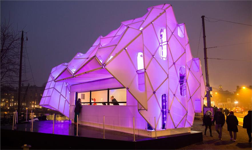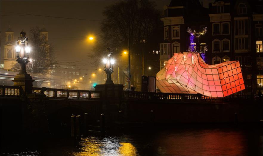 今年阿姆斯特丹燈光節(jié)上的這個(gè)信息亭是個(gè)華麗的燈光裝置。UNStudio事務(wù)所與MDT-tex公司合作設(shè)計(jì)了這個(gè)焦點(diǎn)裝置,利用其催眠脈動(dòng)的燈光吸引游客。