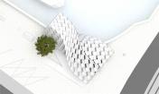 該項(xiàng)目的靈感來源于該節(jié)日的主題——仿生學(xué)。這個(gè)信息亭就像一個(gè)深海生物一樣,利用生物發(fā)光作為吸引點(diǎn)和交流機(jī)制。它包括2個(gè)立方體,通過雙曲線表面彼此相連,產(chǎn)生更加有機(jī)的外貌。