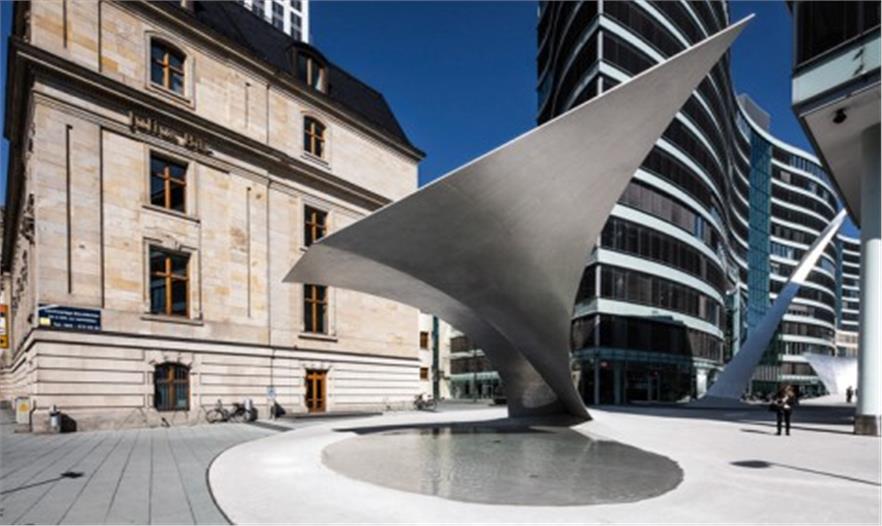 即使從遠處看,這件位于辦公綜合體——“浪潮”中的新雕塑仍然能夠吸引無限關注,邀請街邊的人們進入辦公區(qū)內部一探究竟。同時這股新的“浪潮”,為法蘭克富這片著名的老辦公區(qū)注入了新的活力與吸引力。