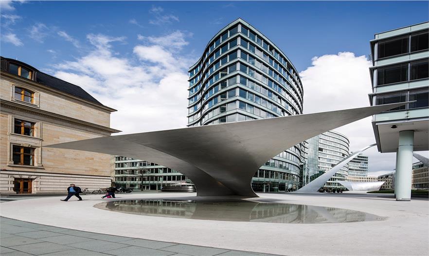這處被稱作“浪潮”的辦公綜合體位于法蘭克福的西區(qū),它建造于1998-2003年,由三個部分組成。與新設計的室外景觀毗鄰的兩棟主要建筑13層高,高度達到50米。盡管坐落于中心地帶,該區(qū)域卻鮮少有人問津。所以設計的初衷是通過令人印象深刻的雕塑來制造吸引力并借助歌劇院區(qū)域形成城市的特色區(qū)域。正如米歇爾.舒馬赫教授所說:“能夠提供給法蘭克福的這件獨特的藝術作品與充滿生氣的城市空間是令人十分矚目的?!?br/>