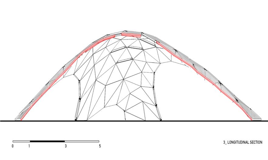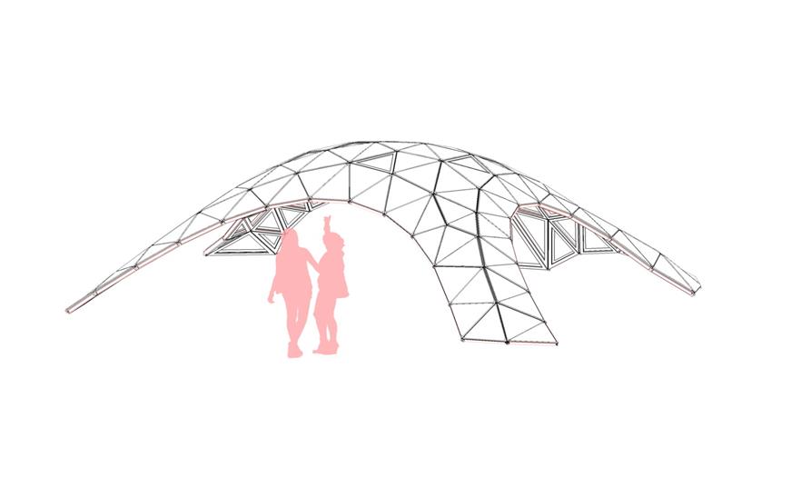 “菌落庭院是一個(gè)由孢子構(gòu)成的亭子,木質(zhì)結(jié)構(gòu)作為生長的土壤。菌絲體從土壤中獲取營養(yǎng),與它融合,并不斷生長。亭子成為一座建筑,誕生后的它,會(huì)隨著游客一起成長,一旦達(dá)到目的,便會(huì)死去。唯一留下的是它帶給人們奇特的體驗(yàn)?!?br/>