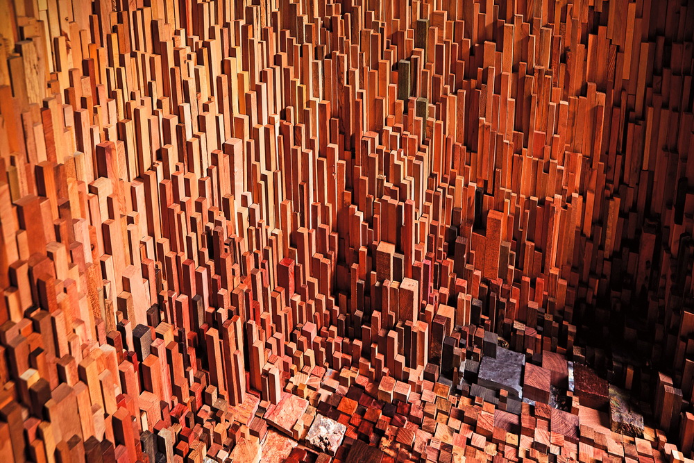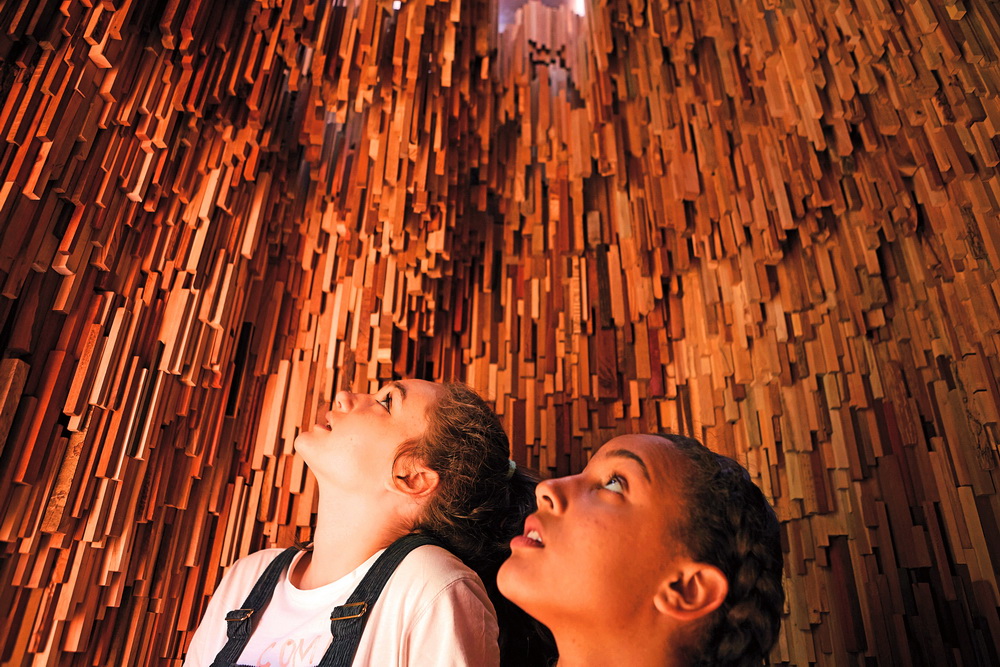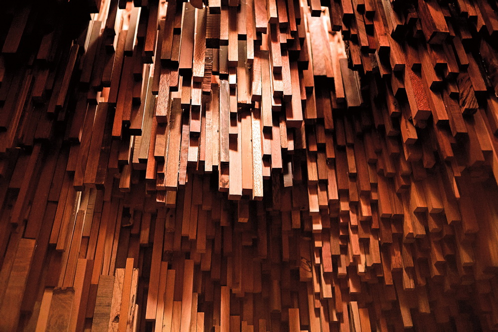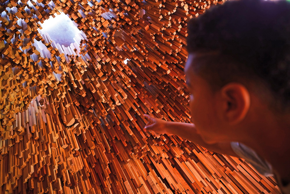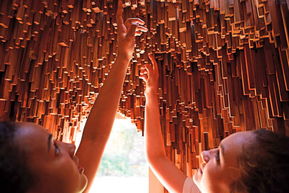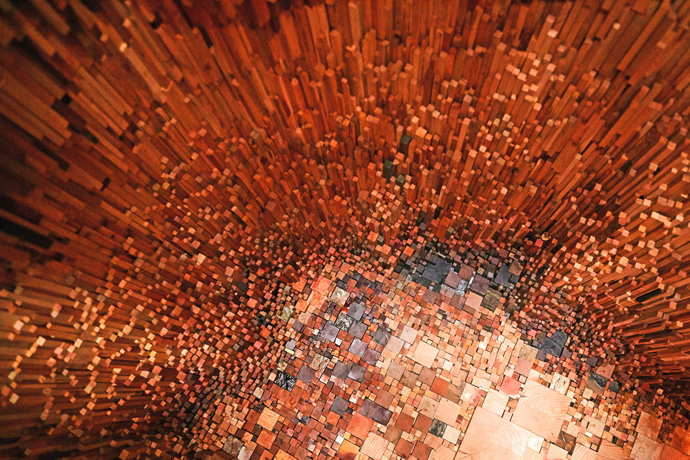 “樹(shù)洞”是地球上跨越數(shù)百萬(wàn)年的森林的微縮模型,樹(shù)木樣本在這個(gè)微觀世界中敘說(shuō)著星球的歷史。外部一簇簇樹(shù)木造型揭示了森林樹(shù)冠的生態(tài)系統(tǒng),花旗木柱子的形式象征著樹(shù)木的高低錯(cuò)落。“樹(shù)洞”內(nèi)部通過(guò)這10000余個(gè)樹(shù)種講述星球的歷史,包括了追溯至3億9千萬(wàn)年前早期森林形成的硅化木化石,以及近來(lái)出現(xiàn)的全新樹(shù)種。