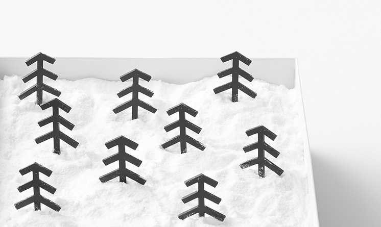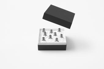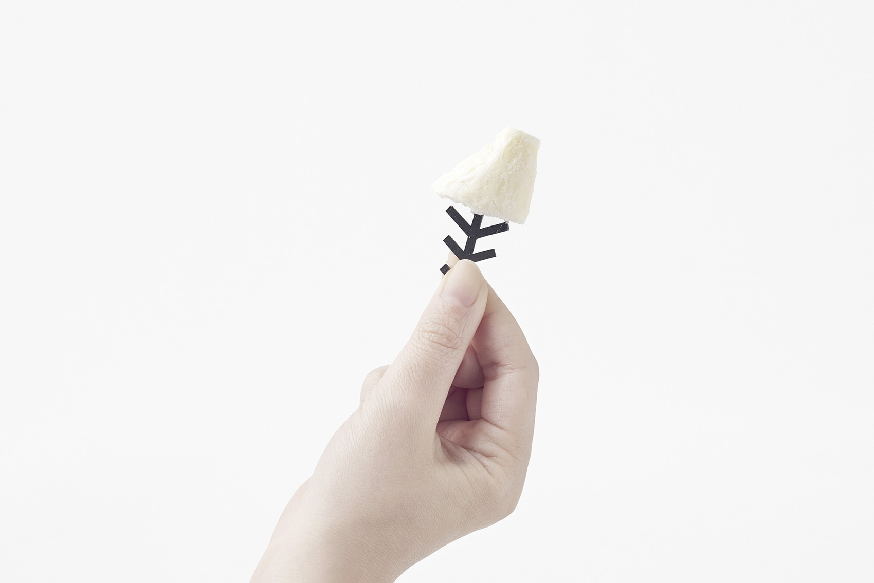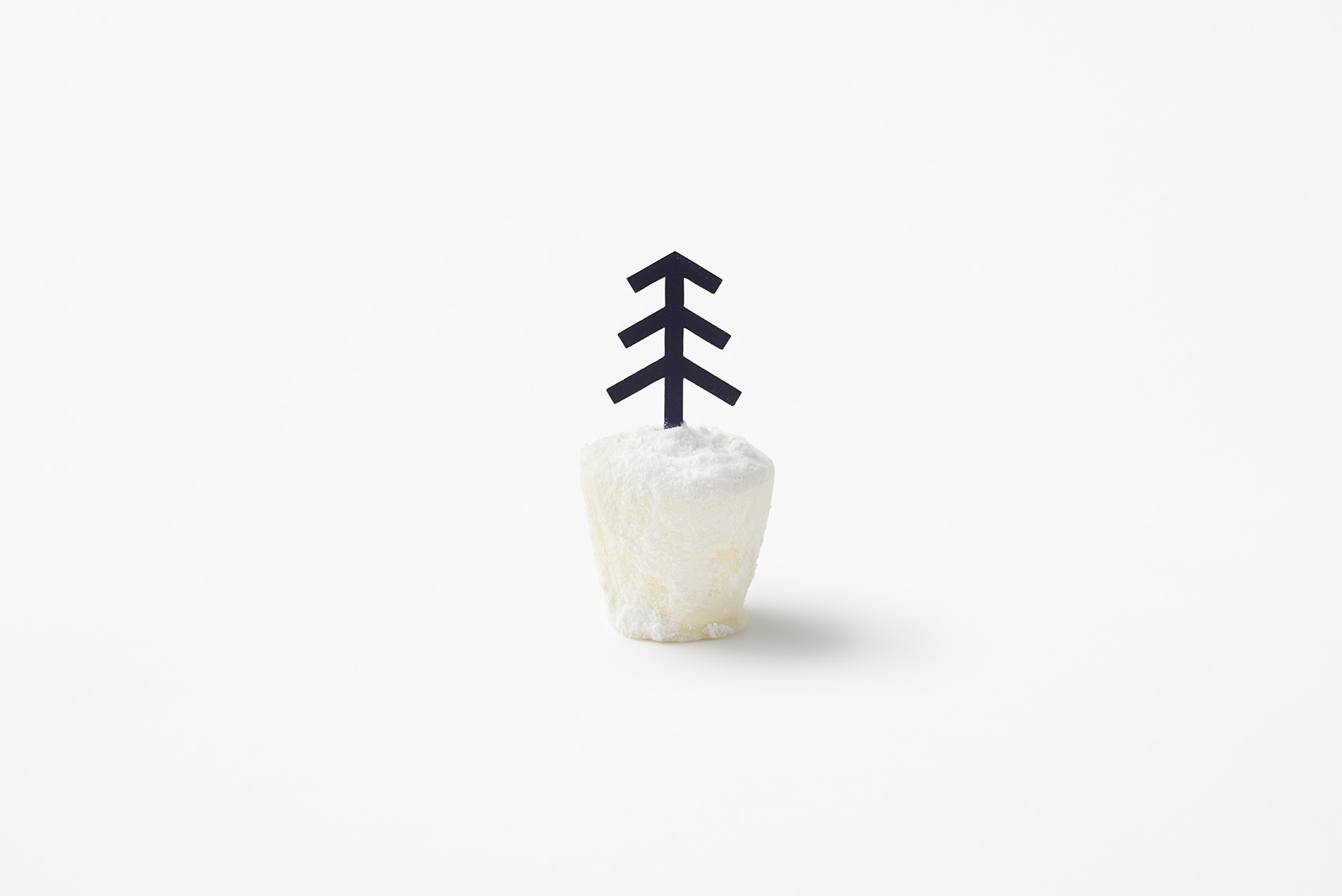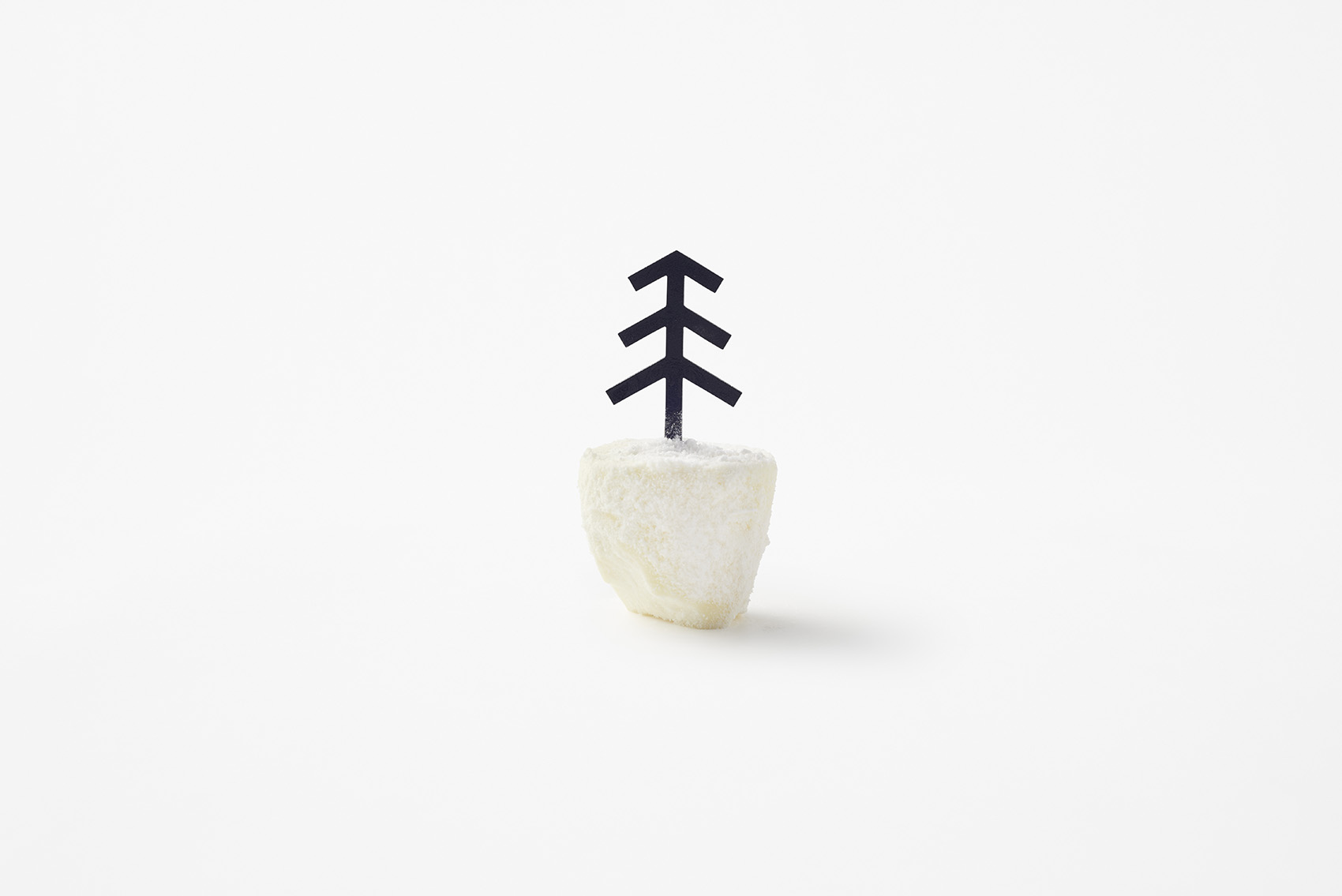 該甜品品牌的名稱“N”源自于單詞 “north”(北方),其logo被設(shè)計(jì)為一個(gè)簡(jiǎn)約的三角形,表明該公司專于利用北海道本地的食材制作甜品。奶酪蛋糕是該品牌的首個(gè)產(chǎn)品。打開(kāi)盒子,呈現(xiàn)在眼前的雪景使人回想起北海道的冬季,隨著“樹(shù)”被一棵棵地拔起,小小的奶酪蛋糕也從下方的雪堆里露出身影。盒子中的“雪”由糖霜制成,“樹(shù)”起到了小木簽的作用。設(shè)計(jì)的靈感來(lái)源于日本北方儲(chǔ)存食物的傳統(tǒng)方法:將蔬菜和水果埋在雪里,使其在自我保鮮的同時(shí)還能夠提高甜度。