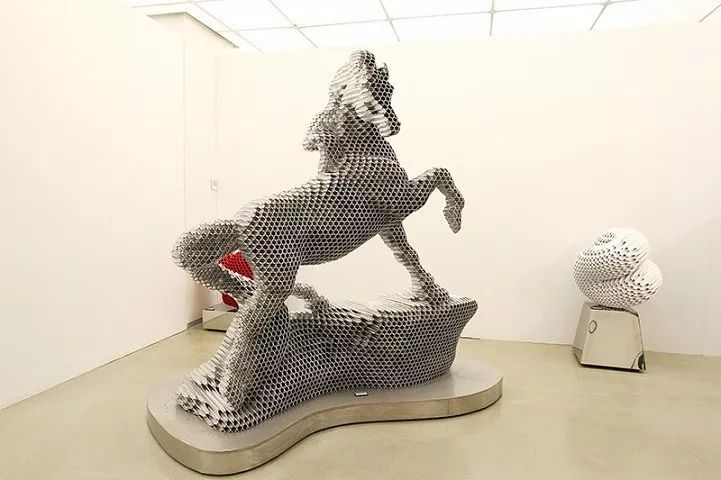有密集恐懼癥的人士請繞道。。一位來自韓國的藝術家Yi Chul Hee用管子堆成的創(chuàng)意雕塑,他通過完美設計每根管子的長度和橫截面角度,使每個完成的雕塑都自然呈現(xiàn)出作品的“真實面目”,讓人有一種很自然的感覺。犀牛、汽車、馬每個作品都活靈活現(xiàn),不過密集癥恐懼者見到了恐怕撒腿就跑。