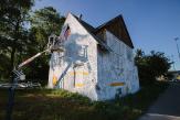 立陶宛自由插畫師a.bran在一棟廢棄的房屋外墻上涂鴉,畫上了作品scars over stars,把一座原本荒涼的房子變成了一處明亮的城市景觀,該作品是為6月底在港口城市克萊佩達舉辦的EDIT街頭藝術節(jié)而設計的。