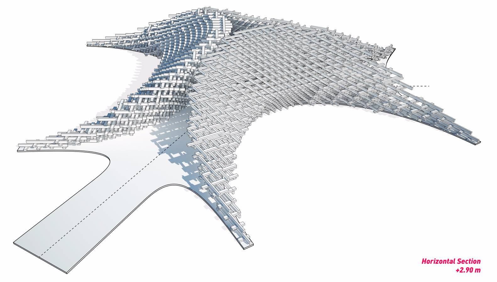 該項目探討了木材在非典型“建筑”中作為結構來傳遞空間體驗的潛力。該裝置反映了我們工作室對未來空間的想法:可持續(xù)性(木材作為材料),結構和空間情感。