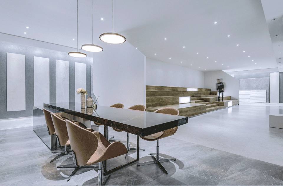 整個設(shè)計的過程亟須審慎,新舊文化碰撞、融合而成的視角,在塊與塊錯落有致的轉(zhuǎn)化中呈現(xiàn)品牌識別,改變積淀而成的傳統(tǒng)觀念,而于更新的品牌體驗,建材商態(tài)的變革不再以幾年為單位,而是時時刻刻面對挑戰(zhàn),對于傳統(tǒng)和未來,重新定位對奇麗砂陶瓷總部而言不失為以恰當(dāng)?shù)穆淠?/p>