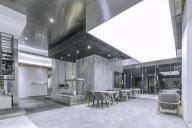 設(shè)計共有五層,首層集設(shè)計、美食、產(chǎn)品銷售等跨界整合。打造視覺、味覺、嗅覺、觸覺與聽覺五重精神體驗。白天,大量自然光涌入落地玻璃幕墻,以中和光雕的視覺沖擊力,落窗外的景觀有意可為引入室內(nèi)。Q-time茶道及美食滲與其空間之中,強(qiáng)調(diào)場景體驗,餐廳特邀知名主廚及她的品牌餐飲團(tuán)隊掌勺。香港香薰堂LEBARAGRANCE專門調(diào)制的獨(dú)特的香味,為大家開啟非一般的藝術(shù)味蕾體驗,飽嘗到美食給帶來的藝術(shù)體驗生活美感。將一座當(dāng)代建筑植入這片傳統(tǒng)展廳的街區(qū)。