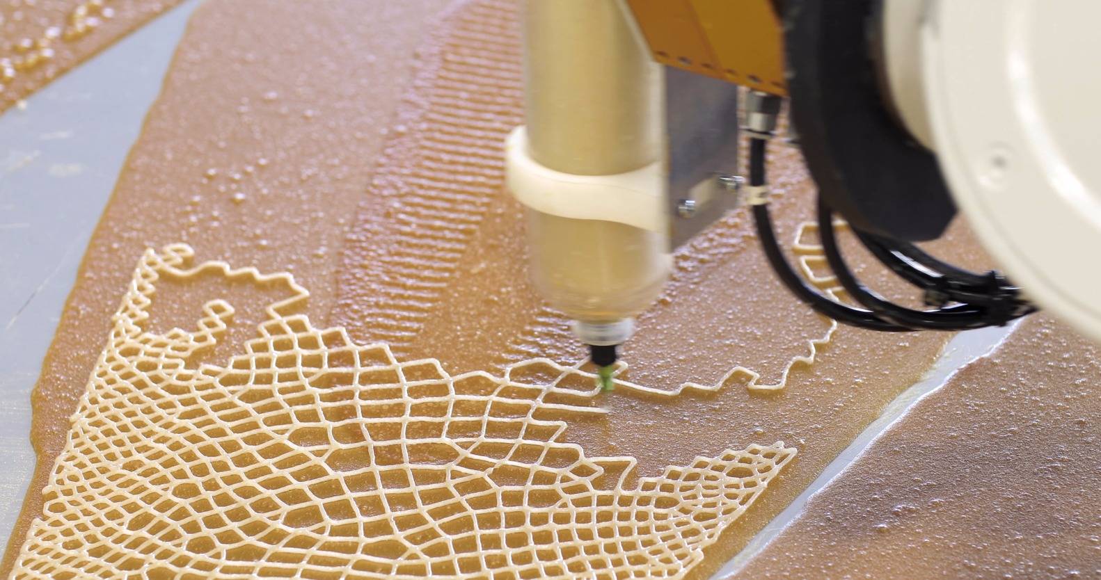 奈麗·奧克斯曼(Neri Oxman)和麻省理工學(xué)院開發(fā)了用于數(shù)字設(shè)計(jì)和建造的可編程水基生物復(fù)合材料。這個(gè)被命名為 Aguahoja 的項(xiàng)目同時(shí)展出了一個(gè)展館和一系列由樹枝,昆蟲外骨骼和人類自己的骨骼中發(fā)現(xiàn)的分子成分組成的藝術(shù)品。項(xiàng)目的材料生產(chǎn)系統(tǒng)以自然生態(tài)系統(tǒng)為靈感,在生產(chǎn)過(guò)程中不會(huì)產(chǎn)生廢料。“這些作品源于有機(jī)物質(zhì),由機(jī)器人打印,并由水塑造而成。它們指向了人類種植物和制造物結(jié)合的未來(lái)?!?/p>