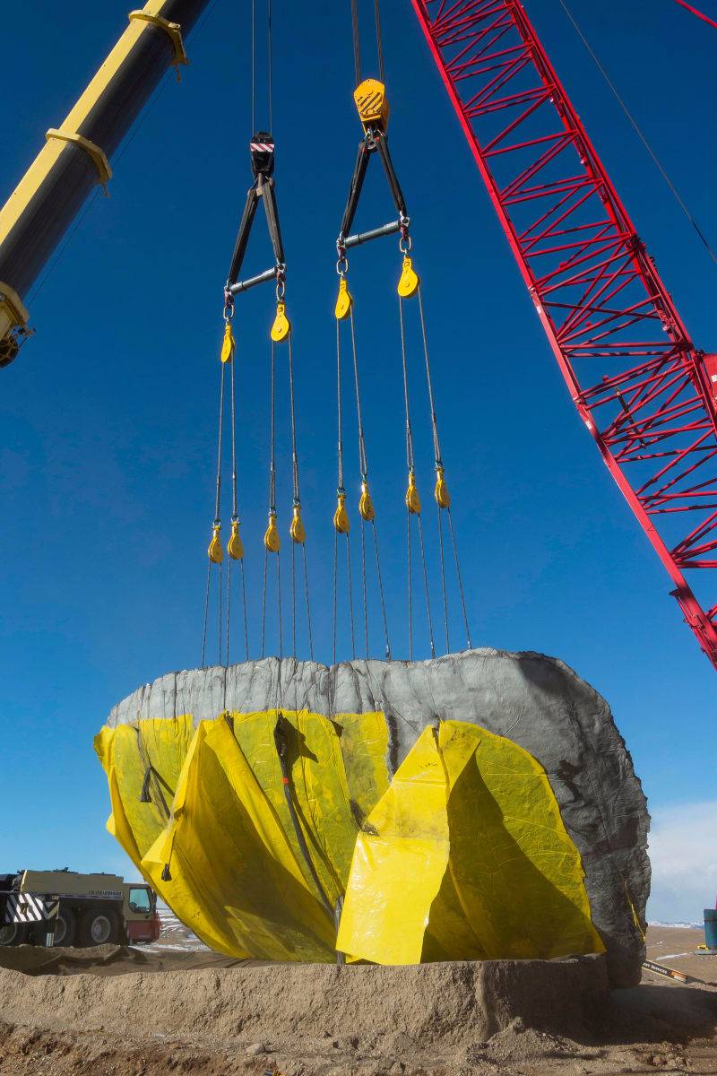 這些構(gòu)筑物能夠喚醒對現(xiàn)有事物的認(rèn)知并進(jìn)一步強(qiáng)化這種印象,它們采用高度工程化的處理手法形成,并對不可預(yù)知的結(jié)果毫不抗拒。這樣得來的構(gòu)筑物造型已經(jīng)與之前從大地中采集而來的材料融為一體,并靜靜地支撐于大地之上。它們保留有大地的記憶和印記,但于大地而言它們則演繹出了新的含義和張力。它們是生長于大地景觀之上的作品,因?yàn)槭谴蟮卦杏怂鼈?,賦予它們秩序,而這些構(gòu)筑物則將物質(zhì)轉(zhuǎn)化為居住空間,在平原、山川、峽谷以及丘陵等地方,組成這片場地原生態(tài)美的環(huán)境中呈現(xiàn)出一系列新的功能空間。