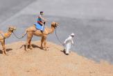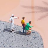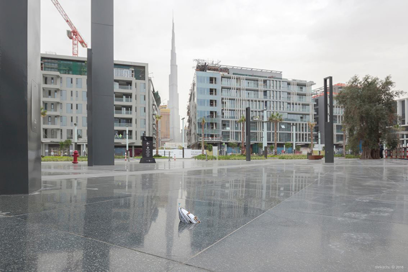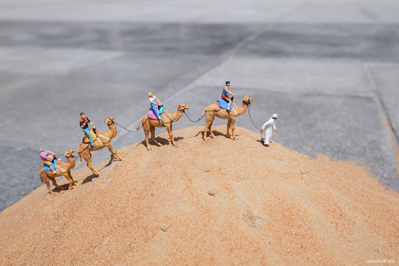 這10個作品是sl inkachu的“小人工程”—它見證了微型列車人物的重塑和繪畫—系列作品的延續(xù),借鑒了迪拜地區(qū)的文化主題。它們被放置在街道上,形成了一道奇特的風景線。比如一小堆沙子被放在街上,上面還有一隊駱駝,看上去就像一幅壯麗的沙漠景觀;點燃的火柴組成了一個篝火營地;一艘玩具快艇沉入了光滑的街道里。