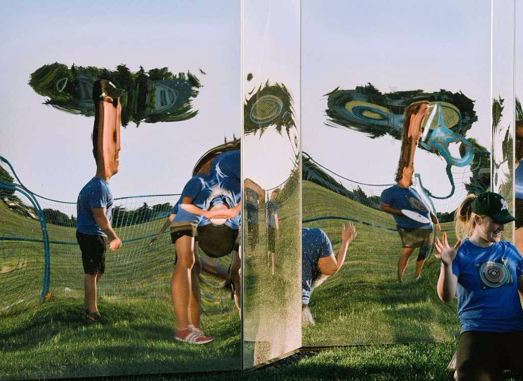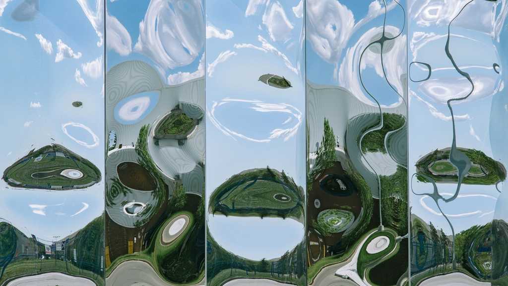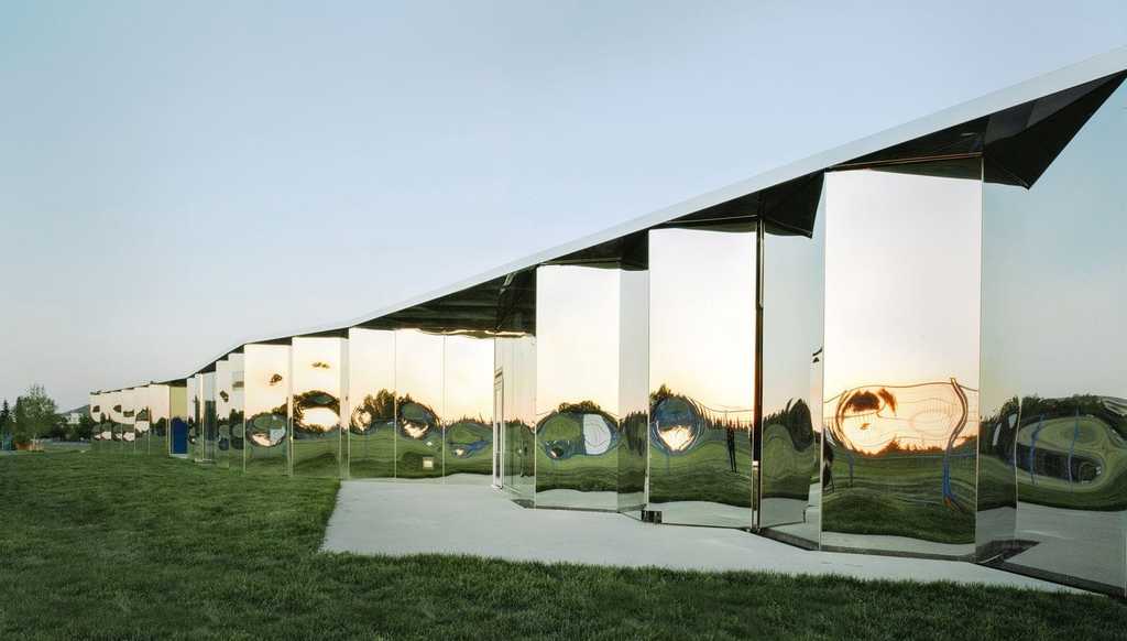為了增加公園的能量,建筑物表面安裝了不銹鋼鏡面板。這種面板具有良好的耐沖擊性能,具有耐用性、可更新性和趣味性。在計(jì)劃中,它們排列成之字形,形成了周圍公園、使用者以及白天和季節(jié)的支離破碎的反映??刹僮鞯牧⒚婷姘逶陉P(guān)閉時(shí)隱藏。