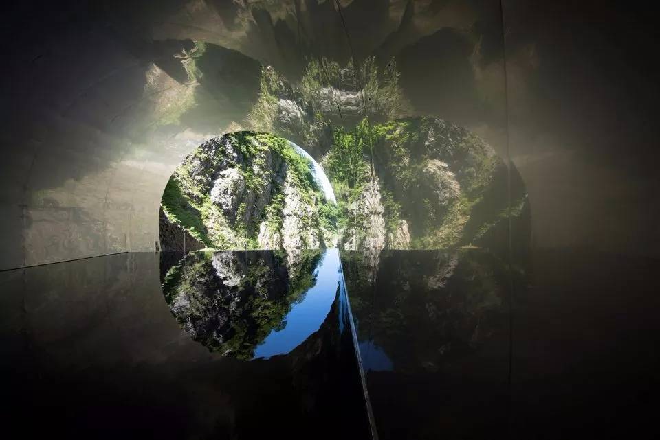 ▼磨砂不銹鋼板將外面的山水天空的光線反射到隧道內(nèi)部