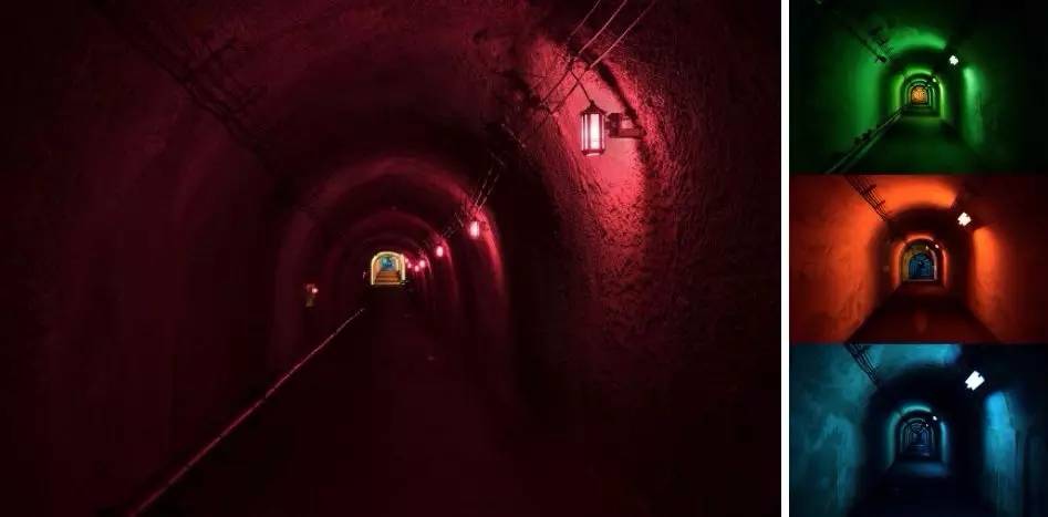 ▼隧道中不同色彩的昏暗燈光