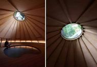 ▼屋頂洞中的鏡面巧妙地將建筑外的峽谷及水流反射至空中