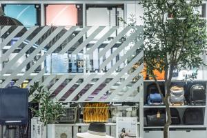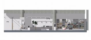 延墻的貨架結(jié)構(gòu)被設(shè)制成一個(gè)零件的模塊化組件,可以很容易地拆卸和重新安裝在另一個(gè)商店位置,配合商品不斷調(diào)著柜體的展示狀態(tài),零售體驗(yàn)借由空間中穿插的無(wú)人售賣(mài)機(jī),與情景化的展示狀態(tài)逐步呈現(xiàn)。