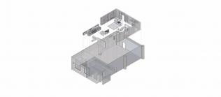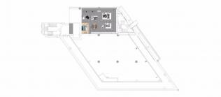 空間中有六個(gè)不同的區(qū)域。整體空間擁有5.3米的挑高。