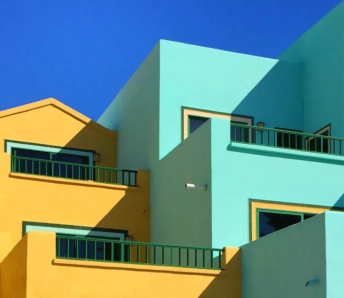 原來建筑攝影也有千禧粉,透心藍(lán)、復(fù)古黃。