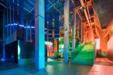 本次設(shè)計(jì)中,他們試圖創(chuàng)造一個社交場所,吸引參觀者前來分享各自的經(jīng)歷,具體說來,這一平臺將核心空間轉(zhuǎn)化成一個沉浸式的建筑環(huán)境,環(huán)境中充滿了絢麗的色彩,結(jié)構(gòu)鮮明,地形多變。