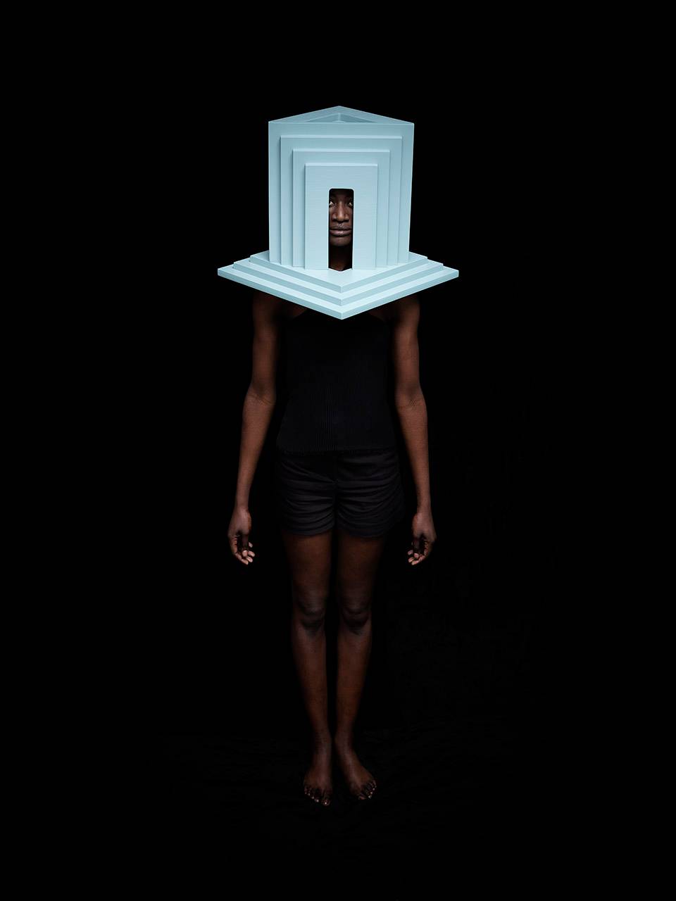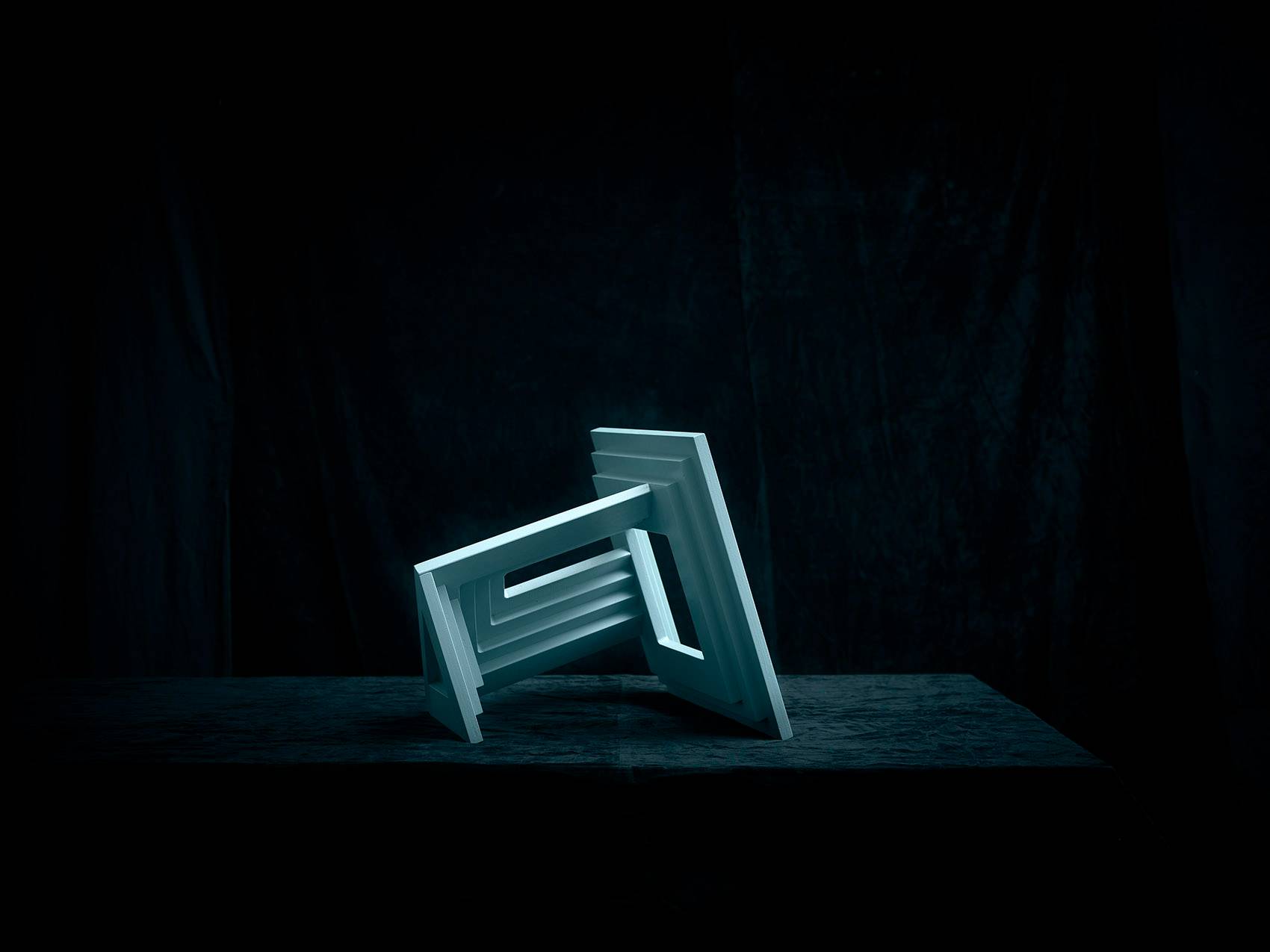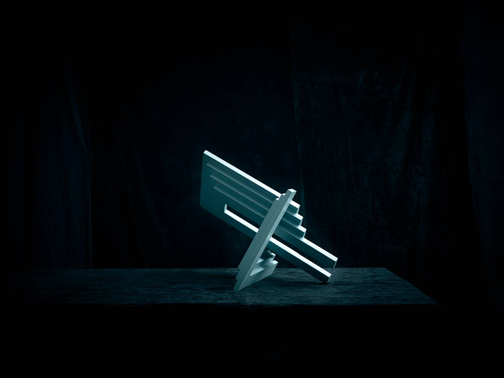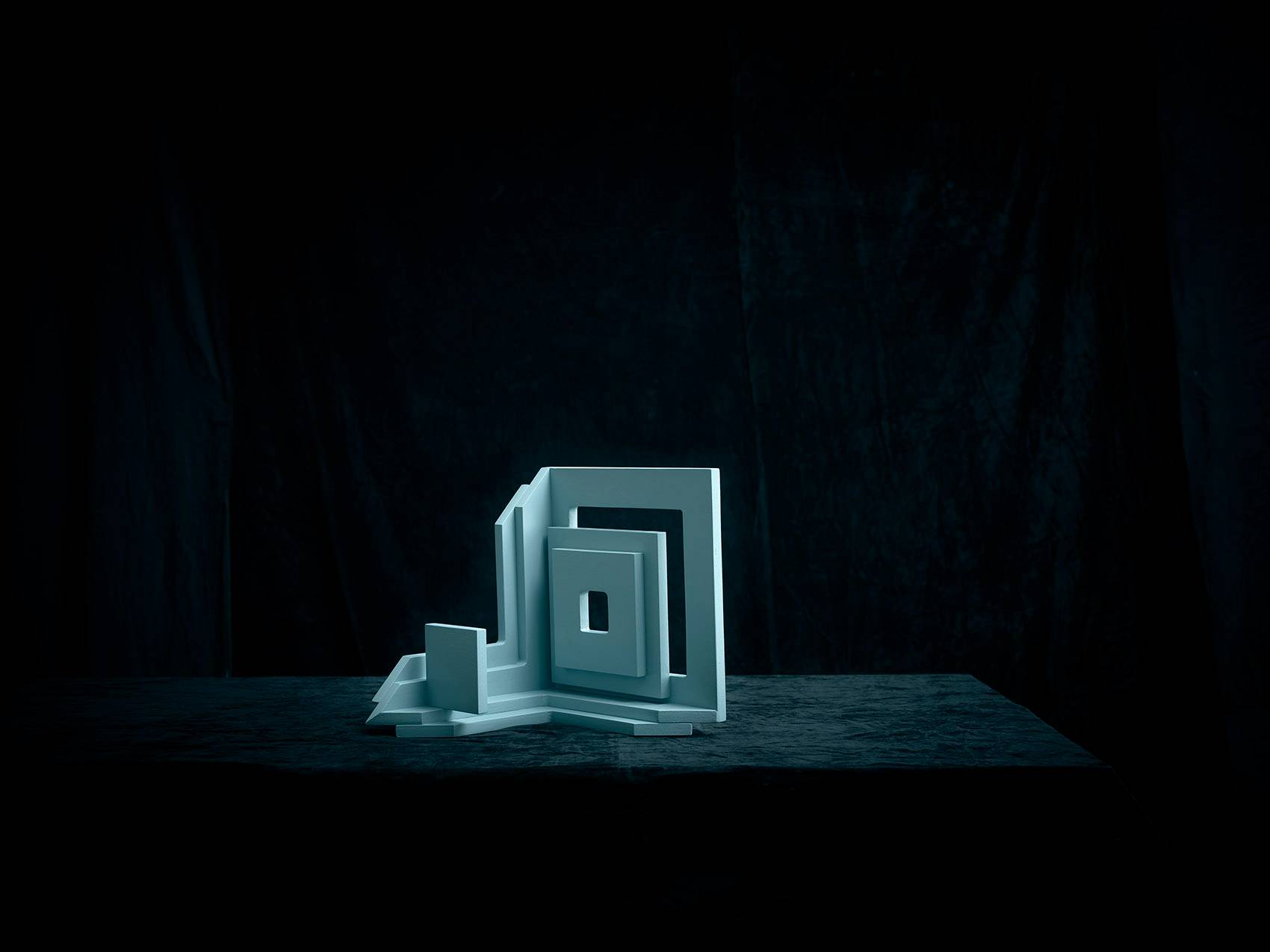 通過數(shù)字形象表現(xiàn)自我文化身份是一個(gè)相對(duì)比較新鮮的現(xiàn)象,人們挑選自己的數(shù)字肖像,試圖在自我表達(dá)和群體認(rèn)同中找到平衡。在這九個(gè)面具中,Siba展示了圖像與現(xiàn)實(shí),公眾與個(gè)人之間不斷轉(zhuǎn)換的關(guān)系。她的面具質(zhì)問道:“在數(shù)字時(shí)代,人究竟為何物?”面具富有建筑感的開放結(jié)構(gòu)讓“臉”與立面產(chǎn)生交錯(cuò)。這些面具為淺藍(lán)色,高60厘米,由18毫米厚的木板制成。每個(gè)面具包含11個(gè)層層相疊的元素,均為CNC加工而成。