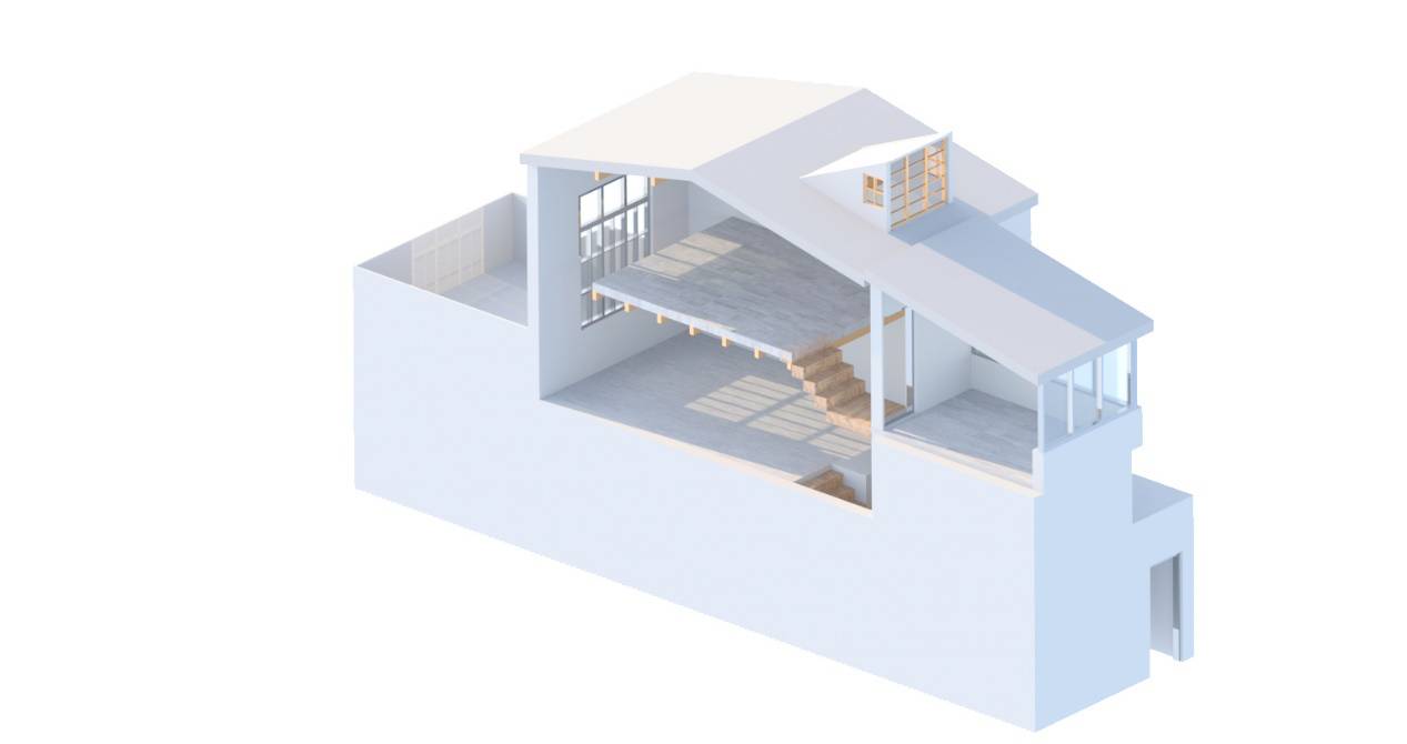 原始二層與三層是一個(gè)相對(duì)規(guī)整的室內(nèi)環(huán)境,墻面斑駁,不適合貓咪的長(zhǎng)期生活。