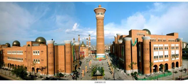 設(shè)計中主要滿足大巴扎的特殊功能需求,建筑空間的創(chuàng)造吸取中亞、新疆傳統(tǒng)建筑的色彩、體量、光影、材質(zhì)、肌理的特色,盡量少用符號,在統(tǒng)一中求變化,力求簡潔,觀光塔作為建筑空間的構(gòu)圖中心,借鑒了喀拉汗王朝在布哈拉的卡梁塔和吐魯番的額敏塔,在外墻上用了新疆特色的工藝砌磚,所以在具有地域民族特色的同時,現(xiàn)代感也很強。在施工圖設(shè)計中,特別強調(diào)建筑細(xì)部的處理,使得大巴扎建筑群顯得很精致。由于烏魯木齊的特殊地位,以及世界幾大文明的交匯,在設(shè)計中對各種文化也刻意地做了表達(dá)。