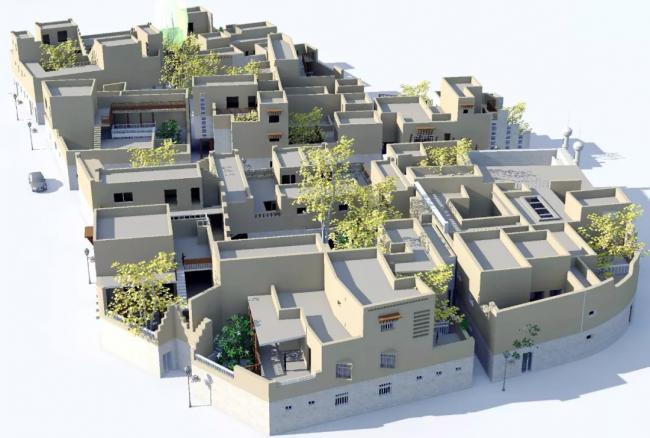 在設(shè)計過程中堅持征求居民意見,一對一的對每護進行設(shè)計,重建時維持原來建筑的風(fēng)貌,主體完成后居民參與設(shè)計內(nèi)部裝飾,為此在“阿霍小區(qū)”做了全過程的實驗,這種思路和方法得到了各個層面的共識,從2008年開始到目前大規(guī)模的改造基本完成。為了更慎重的改造喀什高臺民居,團隊先后投入十余人,歷時4個月對其454護民居進行了實測、訪談并完成了整體和每護的三維數(shù)字模型庫,在此基礎(chǔ)上,從總體布局、單棟改造、道路系統(tǒng)、水、暖、電、市政管網(wǎng)、邊坡支護、結(jié)構(gòu)、構(gòu)造提出了近千頁研究成果,并出版了《喀什高臺民居》重要著作。