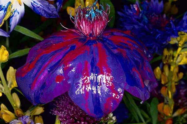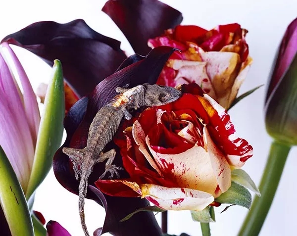 其中“色情花”和“千禧年之花”兩個(gè)系列,更是將荒木經(jīng)惟的創(chuàng)作推向了巔峰。在“色情花”系列中,荒木經(jīng)惟把原本就鮮艷無(wú)比的花涂上了顏料,使其更加絢麗無(wú)比,非常吸引眼球。