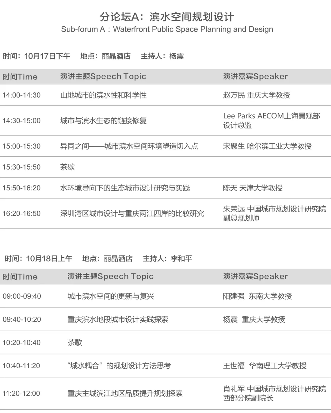 論壇以“山水城市濱水公共空間品質(zhì)提升”為主題,通過“1+5+n”的模式,匯聚國際高端智力。其中“1”為1場主論壇;“5”為5場分論壇,圍繞“濱水空間規(guī)劃設(shè)計”“濱水空間建筑與文化”“濱水生態(tài)景觀”“濱水空間交通”“智慧城市運營”等山水城市建設(shè)重大專題展開,邀請院士和行業(yè)大咖、專家展開共同研討;“n”為多場行業(yè)間、大咖間的交流。