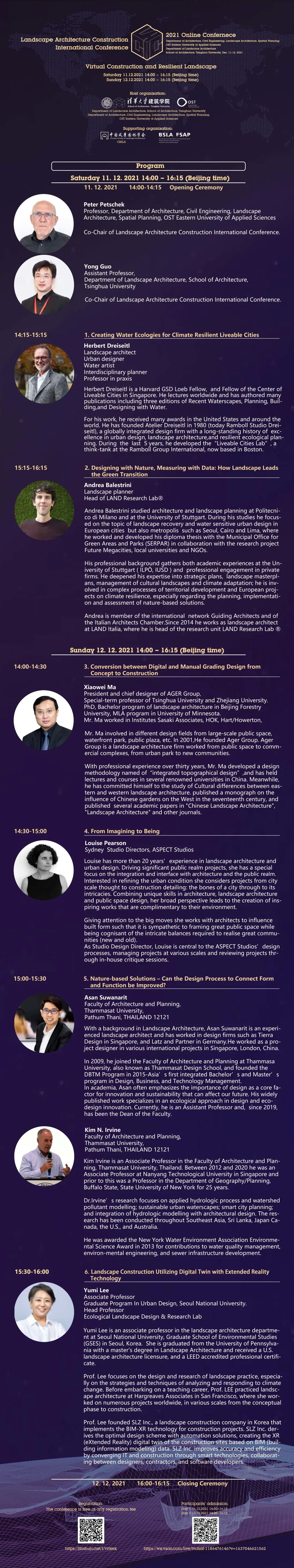 The fist LACIC opened in 2019, hosted by School of Architecture, Tsinghua University, with Porf. Peter Petschek as Chairman of the conference. The vision of the conference is to build a platform to exchange research findings and best practice experiences on landscape engineering, technologies and sciences, especially the application of up-to-date information technologies to construction. In 2020, the conference moved online due to the impact of Covid-19 pandemic. With the supports of both IFLA APR and CHSLA, the online conference turned out to be a great success got over 30000 visits. This year, the third LACIC will continue in the form of online conference and invited presentations will be shared for free.